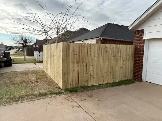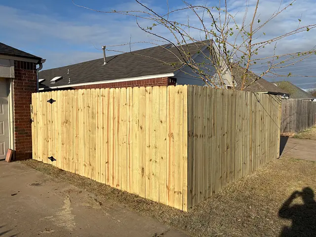 Wood privacy fence installation, fence replacement, and gate installation.